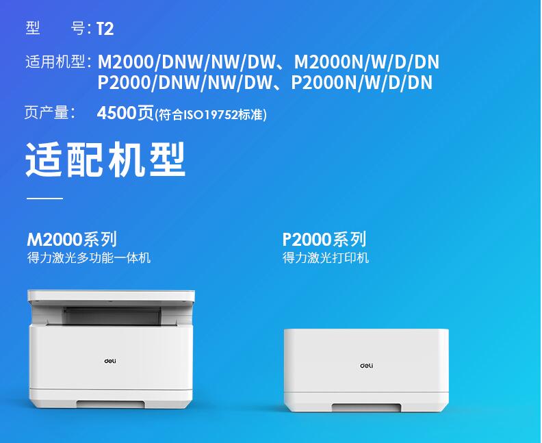 得力T2硒鼓墨盒碳粉M2000DW原裝M2000DNW M2000N NW P2000D P2000W 2000DN激光復(fù)印機打印機粉盒通用易加粉